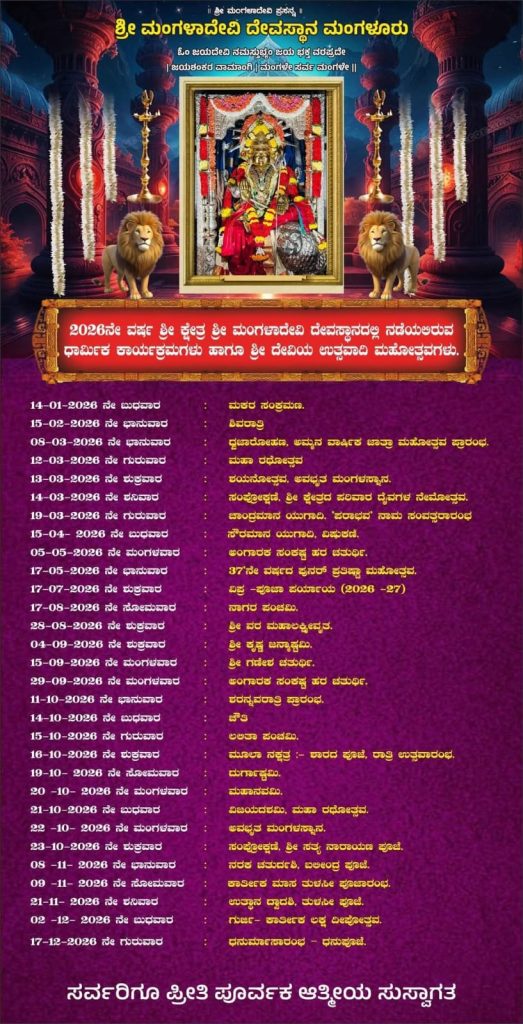 2025 ನೇ ವರ್ಷ ಶ್ರೀ ಕ್ಷೇತ್ರ ಮಂಗಳಾದೇವಿ ದೇವಸ್ಥಾನದಲ್ಲಿ ನಡೆಯಲಿರುವ ಧಾರ್ಮಿಕ ಕಾರ್ಯಕ್ರಮಗಳು ಹಾಗೂ ಶ್ರೀ ದೇವಿಯ ಉತ್ಸವಾದಿ ಮಹೋತ್ಸವಗಳು.
